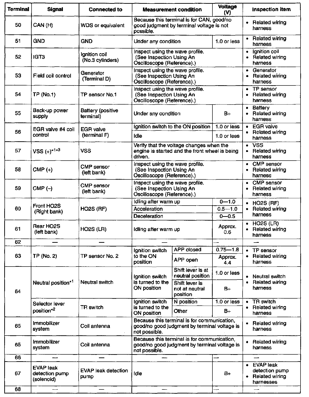Terminal Voltage Table (Reference) - Terminals (50 - 68):