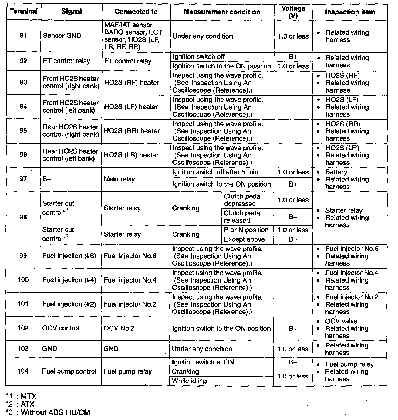 Terminal Voltage Table (Reference) - Terminals (91 - 104):