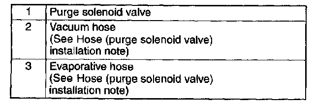 - Refer to the "Evaporative Hose Removal Note" to disconnect the evaporative hose (to the purge solenoid valve) from the charcoal canister. (See Evaporative Hose Removal Note (Type A).)