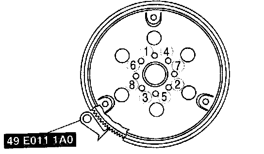 Tighten the drive plate mounting bolts in two or three steps.