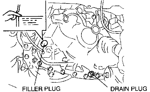 ^ If the oil level is low, add the specified amount and type of oil through the filler plug hole.