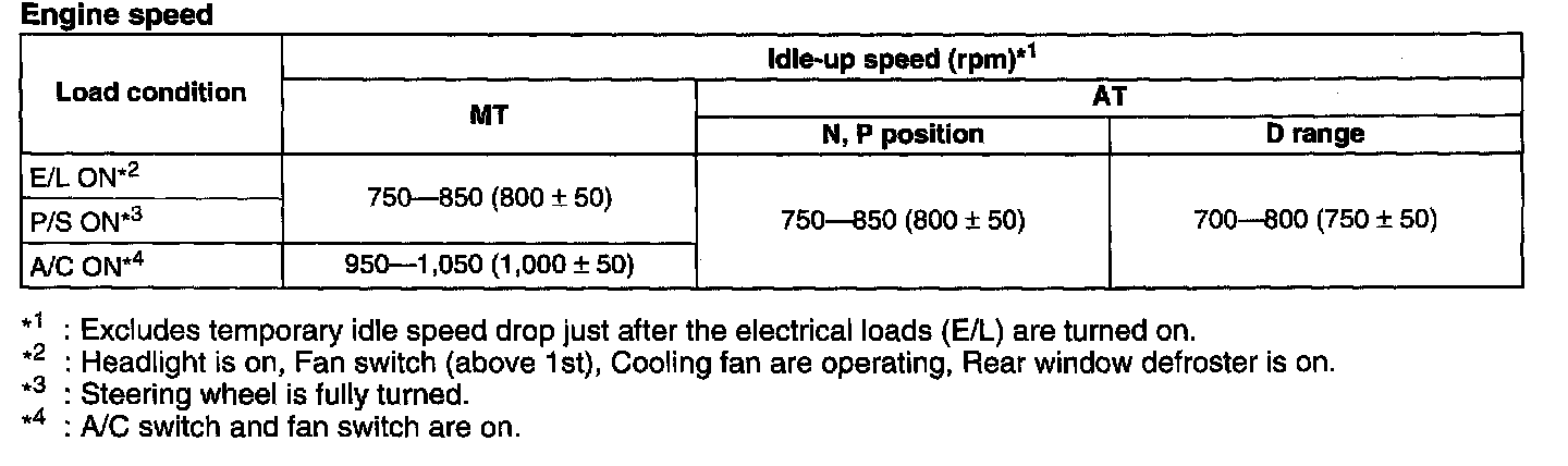 Note: Excludes temporary idle speed drop just after the electrical loads are turned on