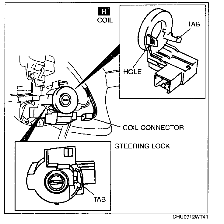 4. Detach the steering lock tab from hole on the coil.