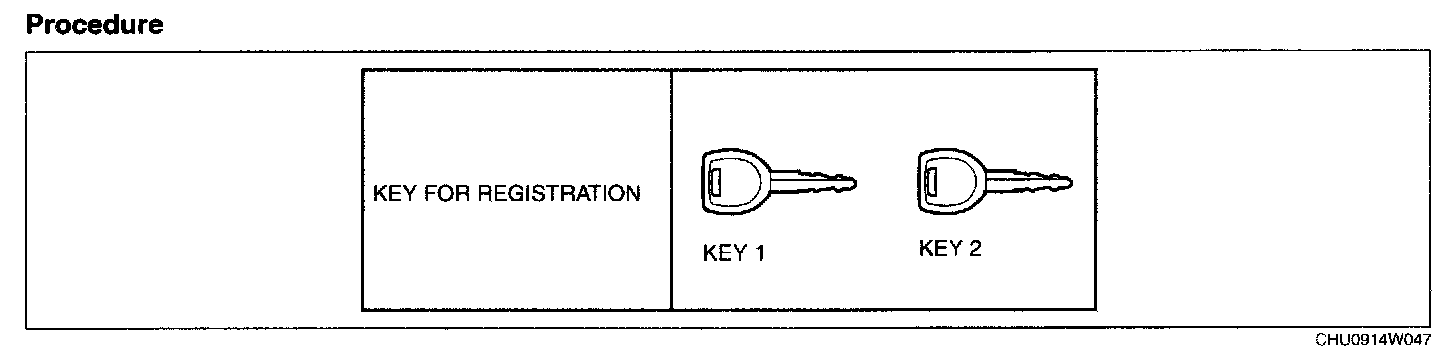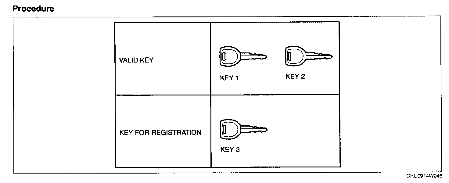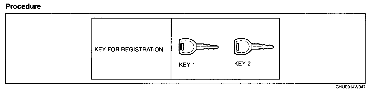 1. Using any key, turn the ignition switch to the ON position. (Either a valid or an unregistered key can be used.)