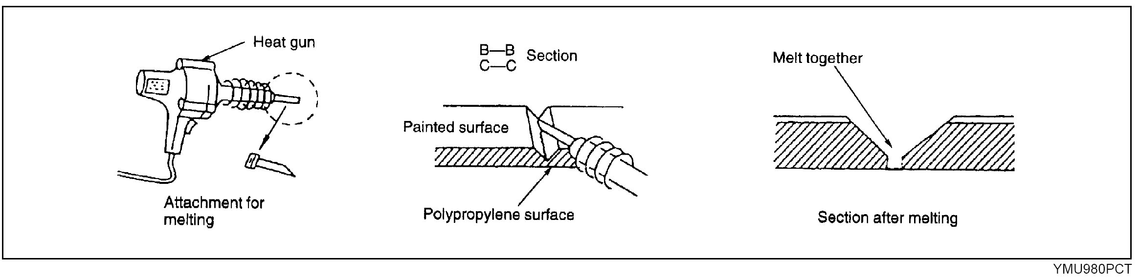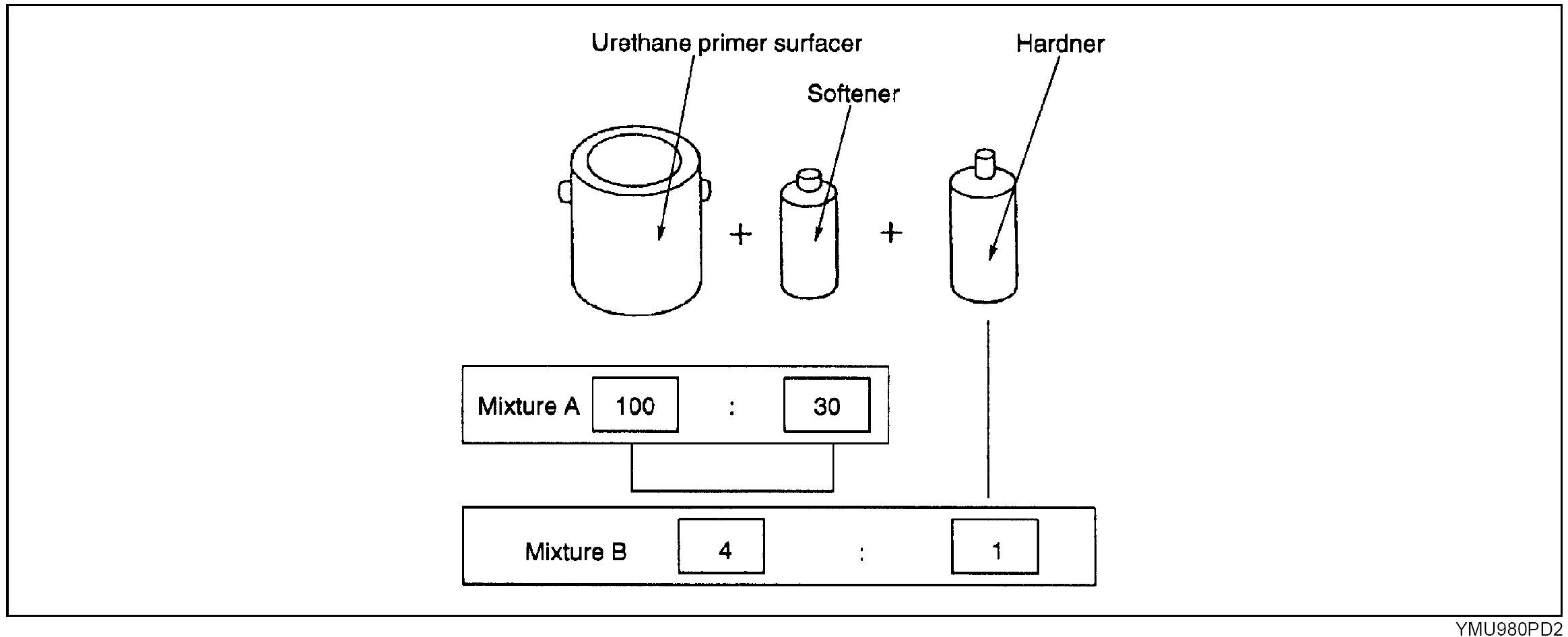 NOTE: Be sure to use only urethane primer for a urethane bumper and polypropylene primer for a polypropylene bumper. Other paints for repairing a polypropylene bumper are the same as those for the urethane bumper.
