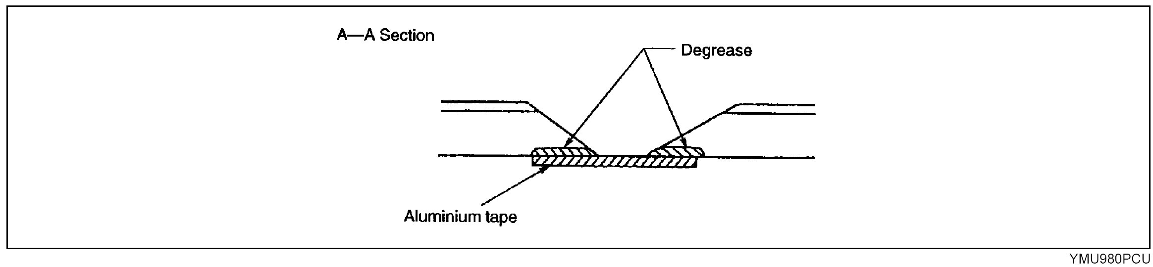 - For repair of a hole, degrease the area on both sides of the bumper and apply aluminium tape on the reverse side of the damage area.