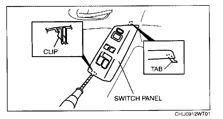3. Remove the switch panel from the front door trim keeping the tab from catching.