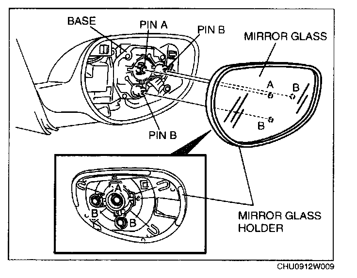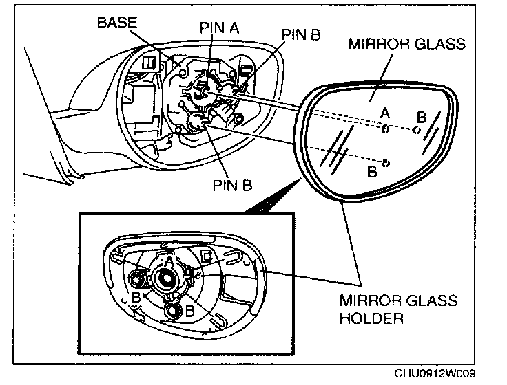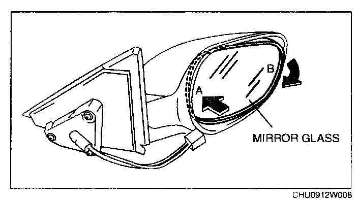 2. Detach pin A while lifting up the inside of the mirror glass holder.