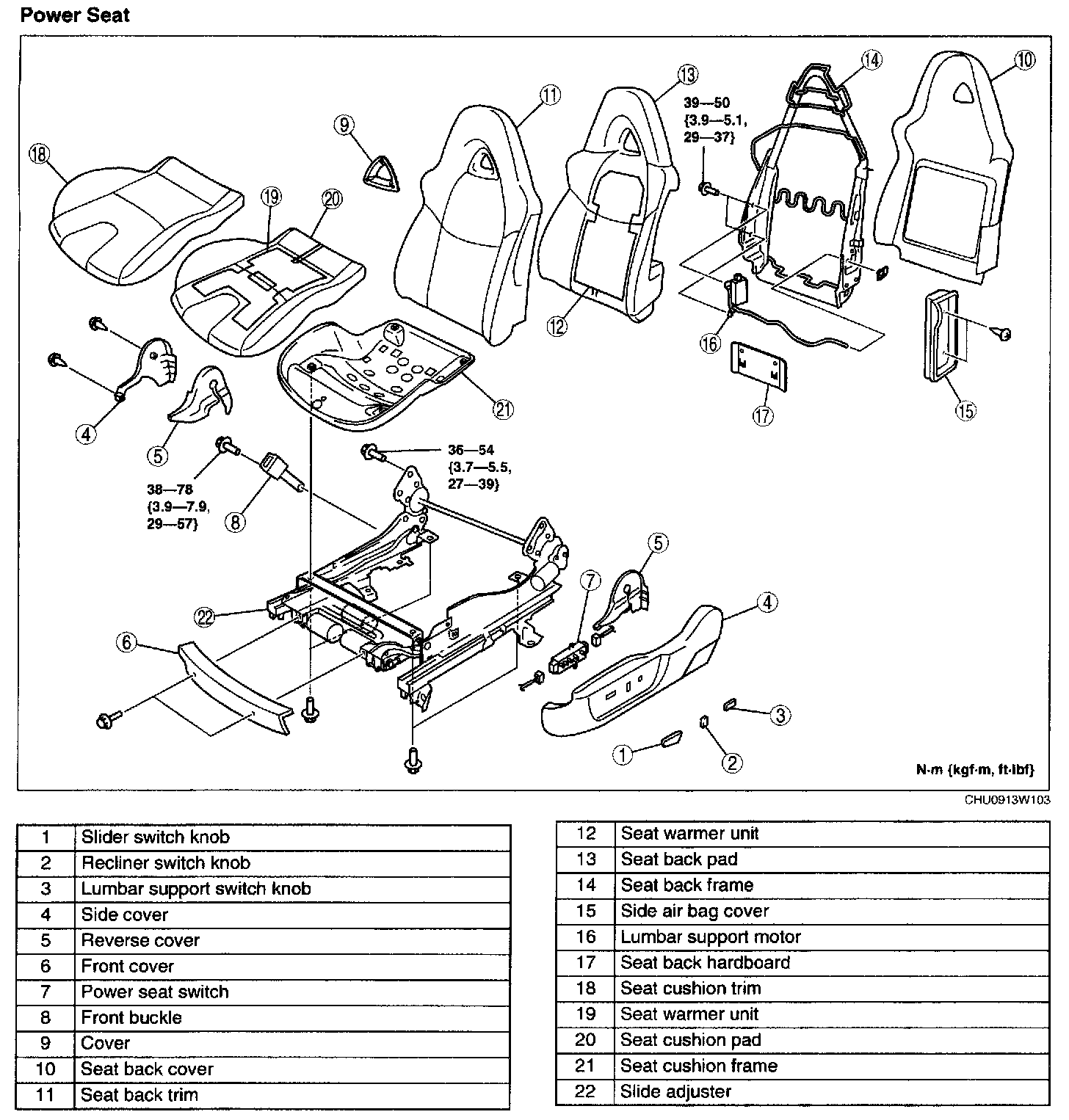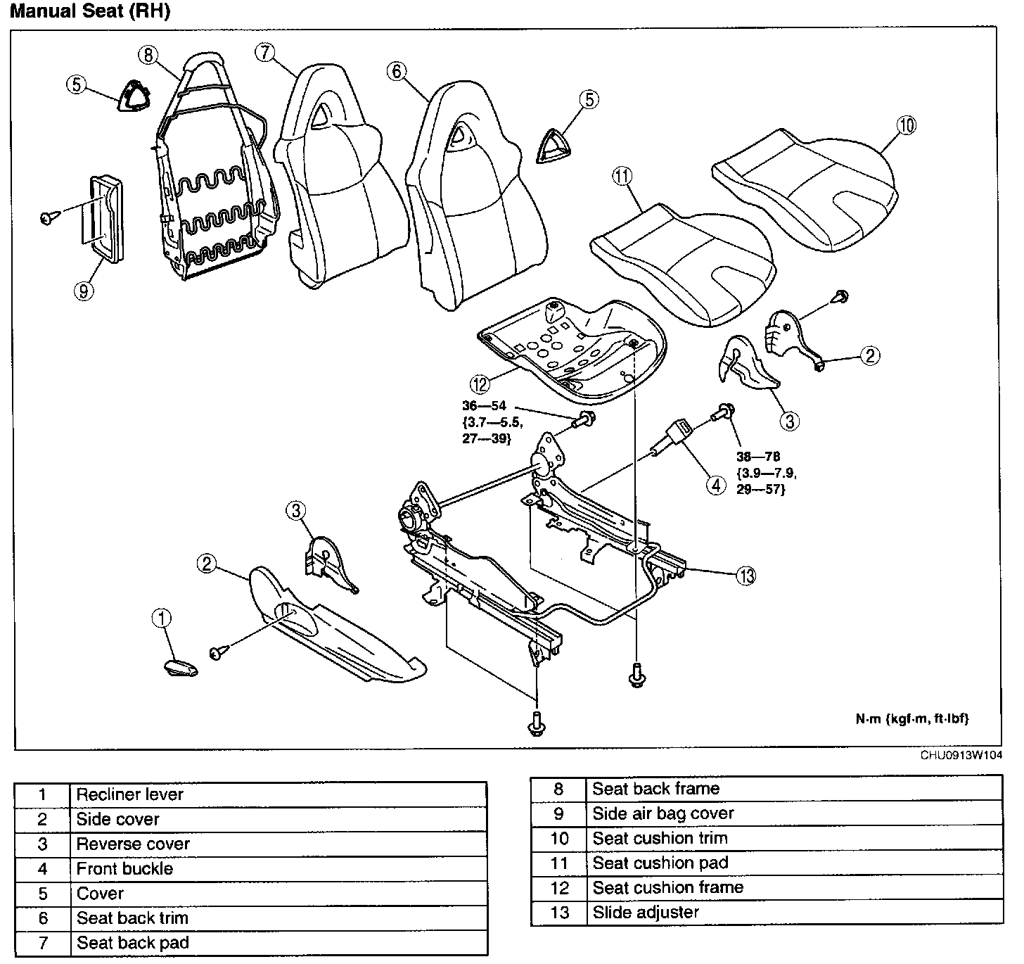 FRONT SEAT DISASSEMBLY/ASSEMBLYWARNING: Handling the front seat (with a side air bag) improperly can accidentally deploy the side air bag, which may seriously injure you. Read the service warnings before handling the front seat (with a side air bag).
