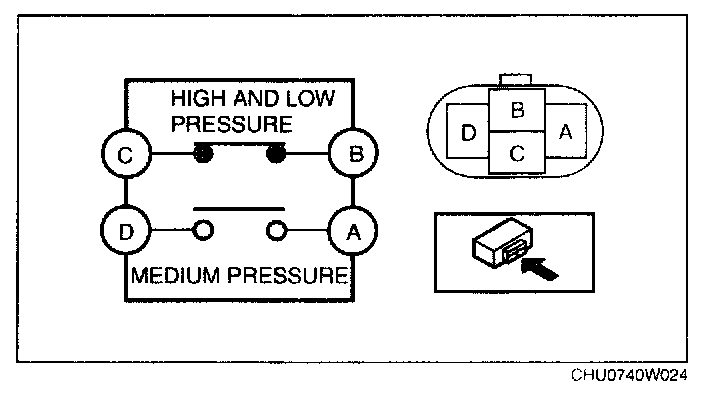 - If the continuity is not normal, replace the refrigerant pressure switch.