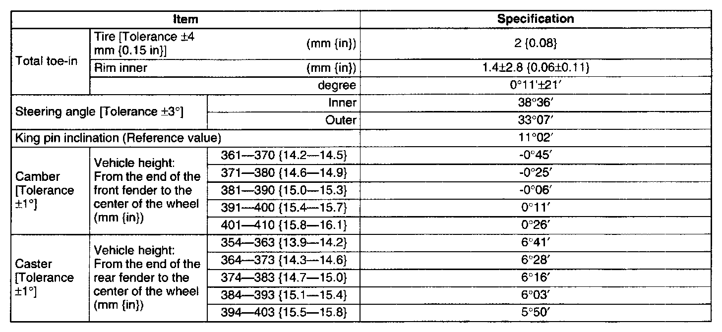 FRONT WHEEL ALIGNMENTSpecification (Unloaded Condition)