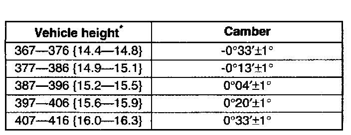 Total Toe-in Standard 2 ± 4 mm (0.08 ± 0.15 inch) (0°11' ± 21')