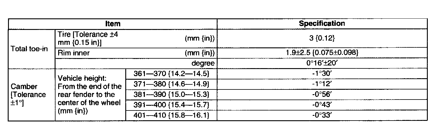 REAR WHEEL ALIGNMENTSpecification (Unloaded Vehicle)