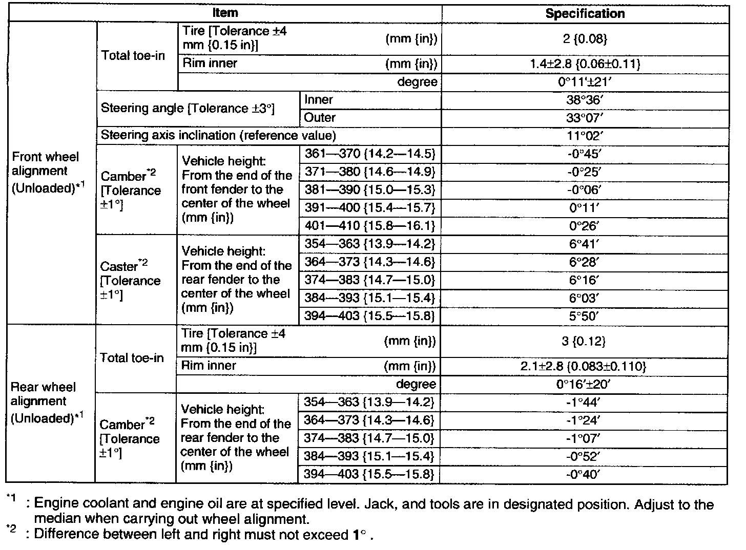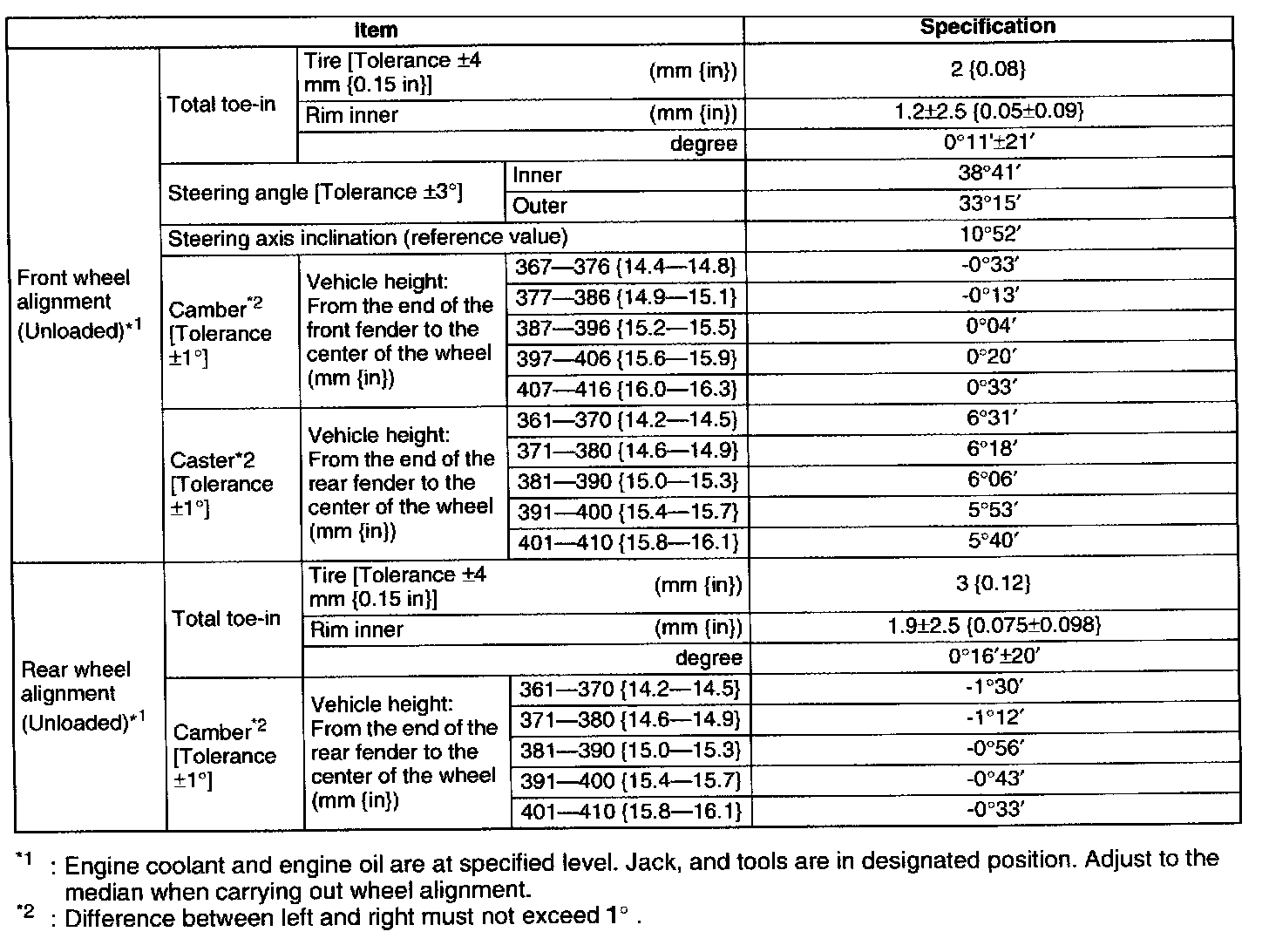 Alignment: Specifications