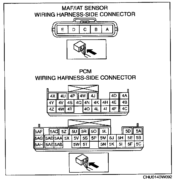- MAF/IAT sensor terminal E and PCM terminal 4U