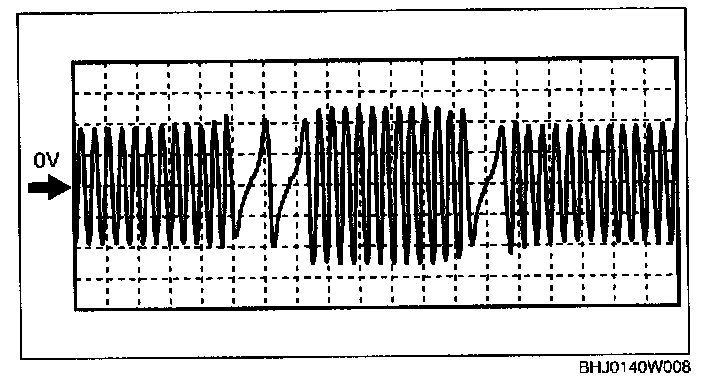 Inspection Using An Oscilloscope (Reference)NOTE: The duty ratio for the wave pattern can vary with the control conditions. Therefore determine comprehensively where the malfunction occurs among the input systems, output systems, and the PCM.
