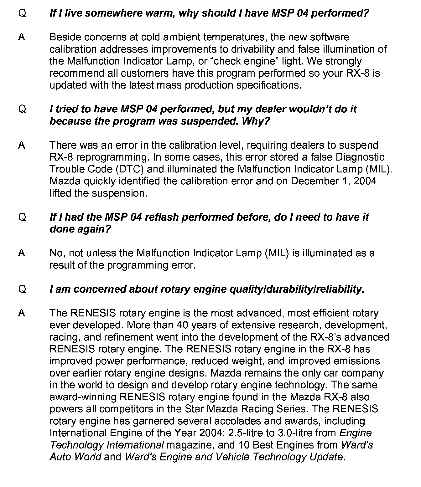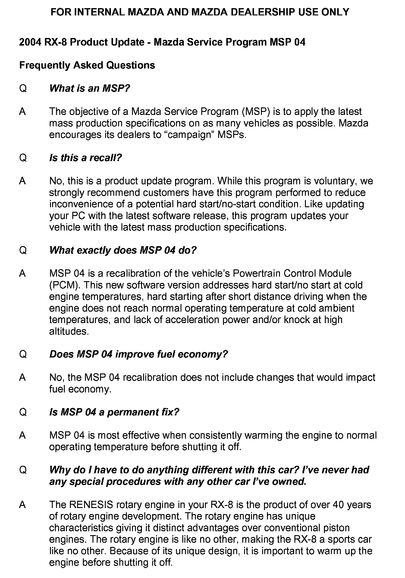 Technical Service Bulletins