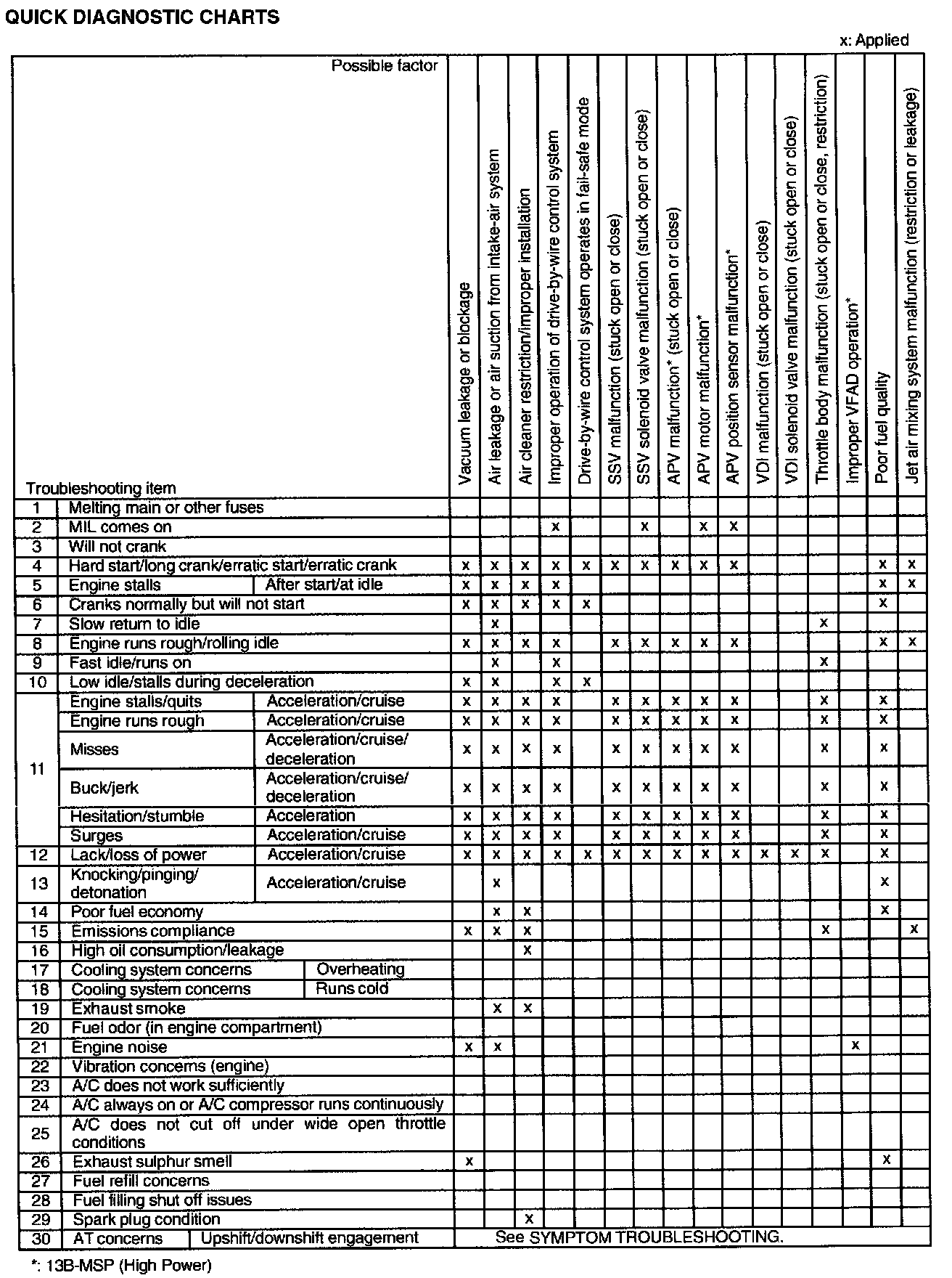Symptom Quick Diagnostic Chart