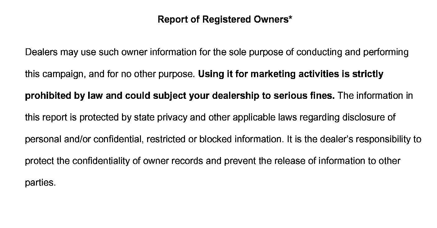 Report of Registered Owners