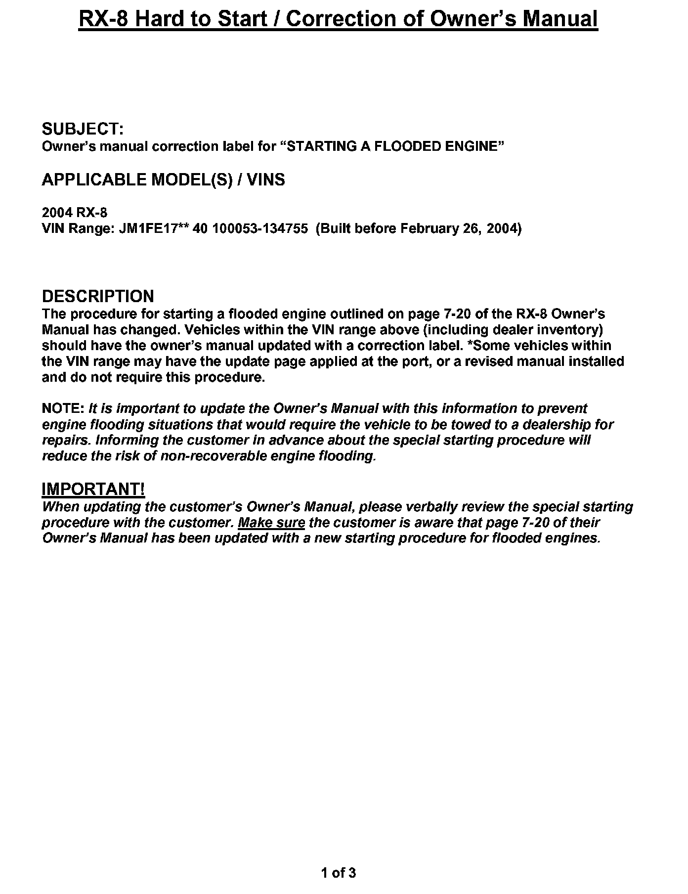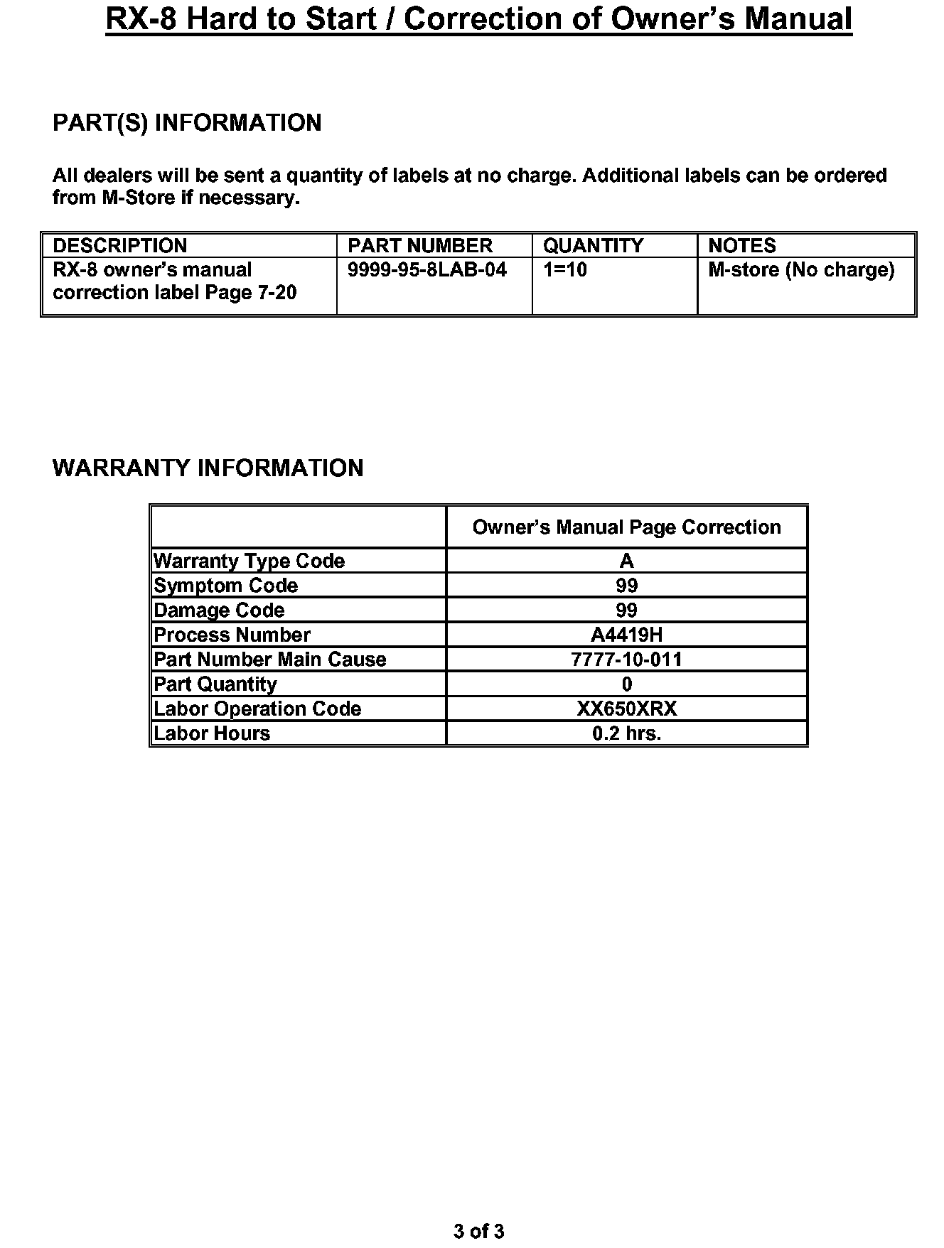 Correction of Owner's Manual