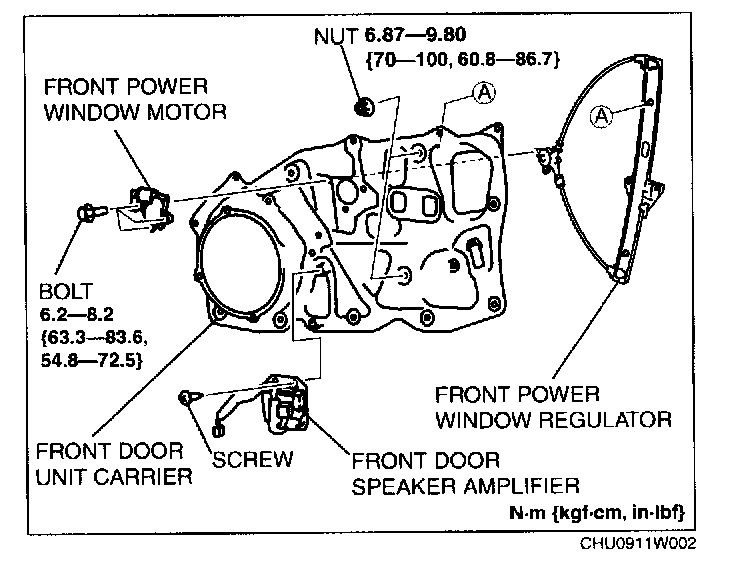FRONT DOOR UNIT REMOVAL/INSTALLATION1. Disconnect the negative battery cable.