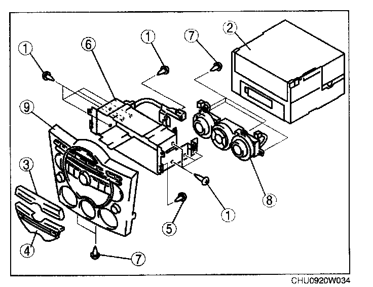 CENTER PANEL MODULE DISASSEMBLY/ASSEMBLYCAUTION: Before disassembling the center panel module, spread a cloth on the floor to put the disassembled parts on. This protects the surface of the panel from scratches or dirt.