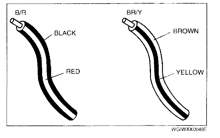 The first letter indicates the base color of the wire and the second the color of the stripe.