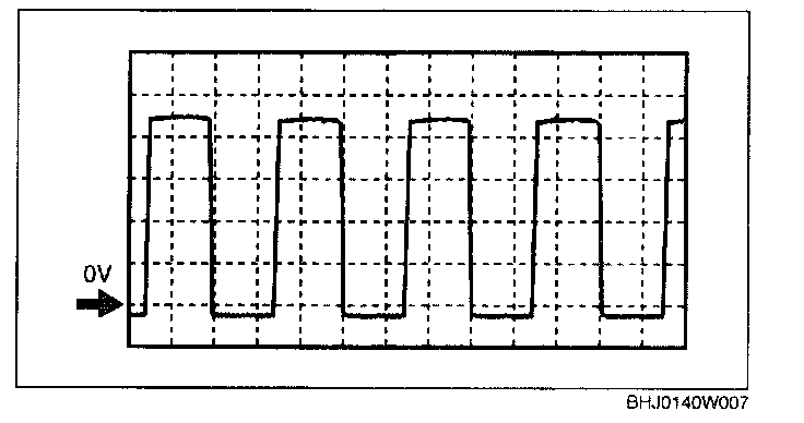 Inspection Using An Oscilloscope (Reference)NOTE: The duty ratio for the wave pattern can vary with the control conditions. Therefore determine comprehensively where the malfunction occurs among the input systems, output systems, and the PCM.