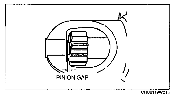 - If not as specified, adjust with an adjustment washer (between drive housing front cover and magnetic switch).