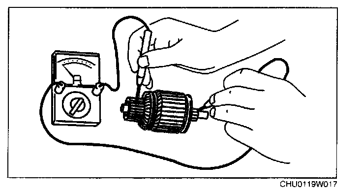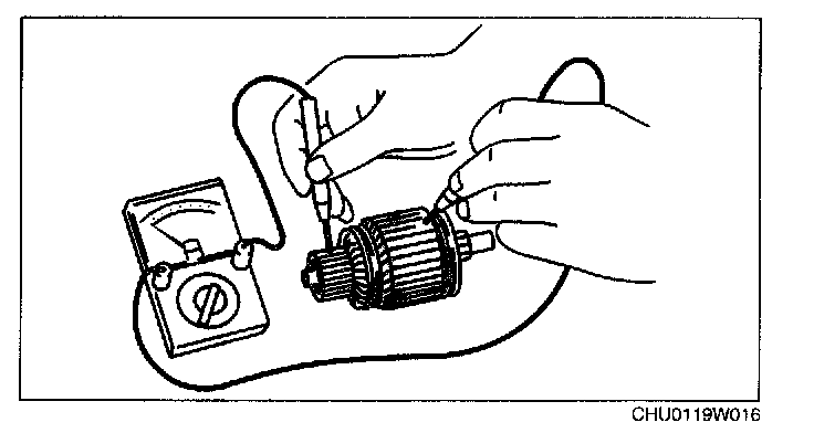 2. Verify that there is no continuity between the commutator and the shaft using an ohmmeter.