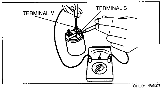 1. Inspect for continuity between terminals S and M using an ohmmeter.