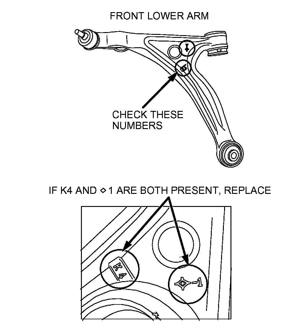 ^ If the either of the front lower arms have the combination of both K4 and (diamond) 1 as shown, go to step 3.