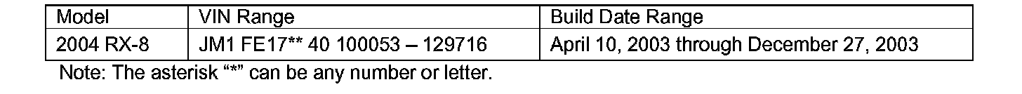 2. You own or have owned a subject 2004 RX-8 within the VIN ranges: