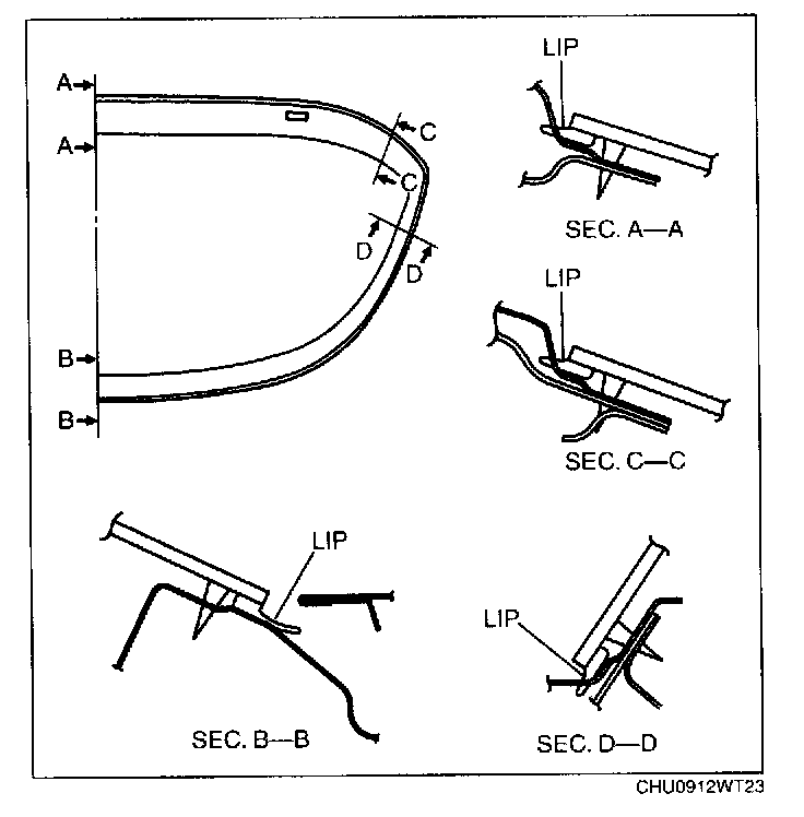 CAUTION: Proper installation of the windshield may be difficult if sealant is cracked or the glass is pushed out by air pressure when a door is opened/closed with all the window glass closed. Leave all the windows open until the rear window glass is installed completely.