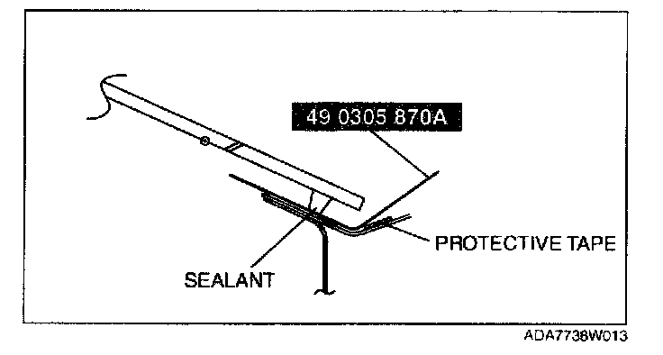 2. If the sealant has come off completely in any one place, apply some primer after degreasing, and allow it to dry for approx. 30 min. Then apply a 2 mm {0.08 in} thickness of sealant.
