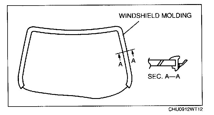 NOTE: Before removing the windshield from the body, mark the position of the windshield by affixing tape to the windshield and body panel.