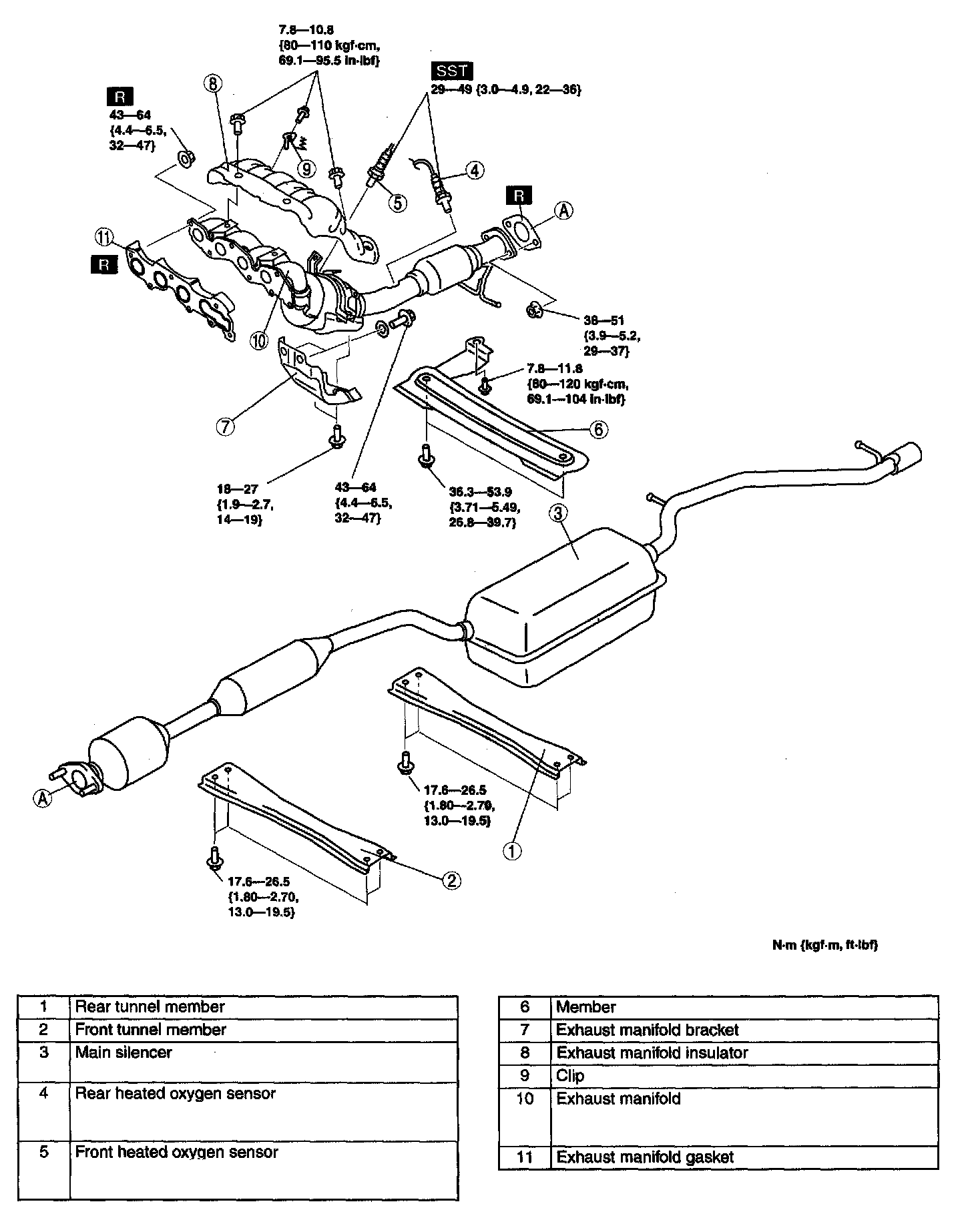 EXHAUST SYSTEM REMOVAL/INSTALLATIONWarning: A hot engine and exhaust system can cause severe burns. Turn off the engine and wait until they are cool before removing the exhaust system.