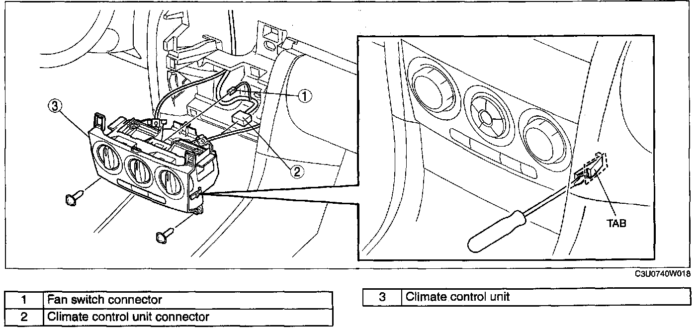 CLIMATE CONTROL UNIT REMOVAL1. Disconnect the negative battery cable.