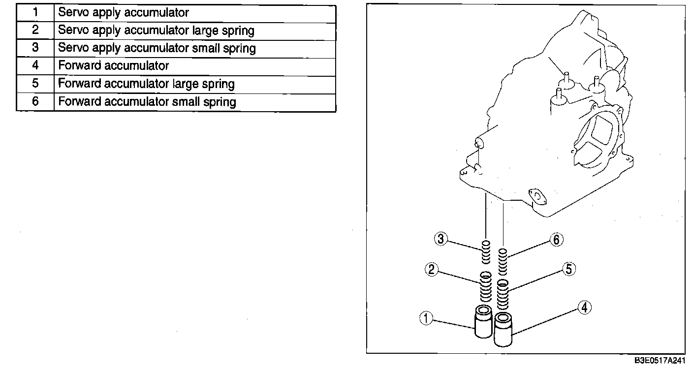 3. Install the servo apply accumulator small spring, servo apply accumulator large spring and servo apply accumulator.