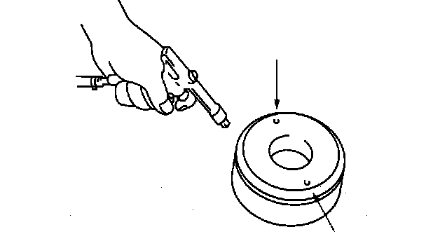 (3) Apply compressed air to the part indicated in the figure and let the reverse clutch piston stroke three times.