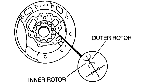 2. Measure the clearance between the end of the oil pump housing and the outer rotor and inner rotor at four places along their circumferences.