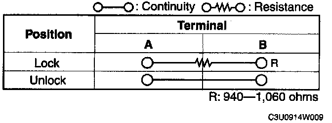 Inspect for continuity between the door lock switch terminals using an ohmmeter.