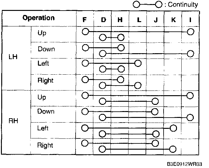 1. Inspect for continuity between the power outer mirror switch terminals.
