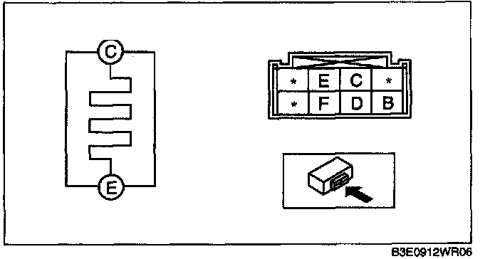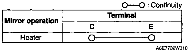 2. Inspect for continuity between the power outer mirror heater terminals.