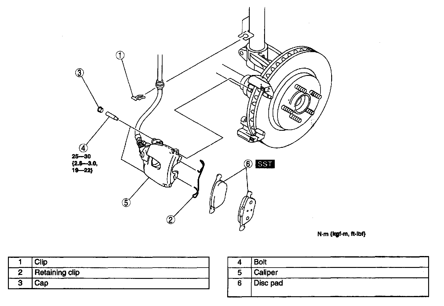 FRONT BRAKE (DISC) REMOVAL/INSTALLATION1. Remove in the order indicated in the table.