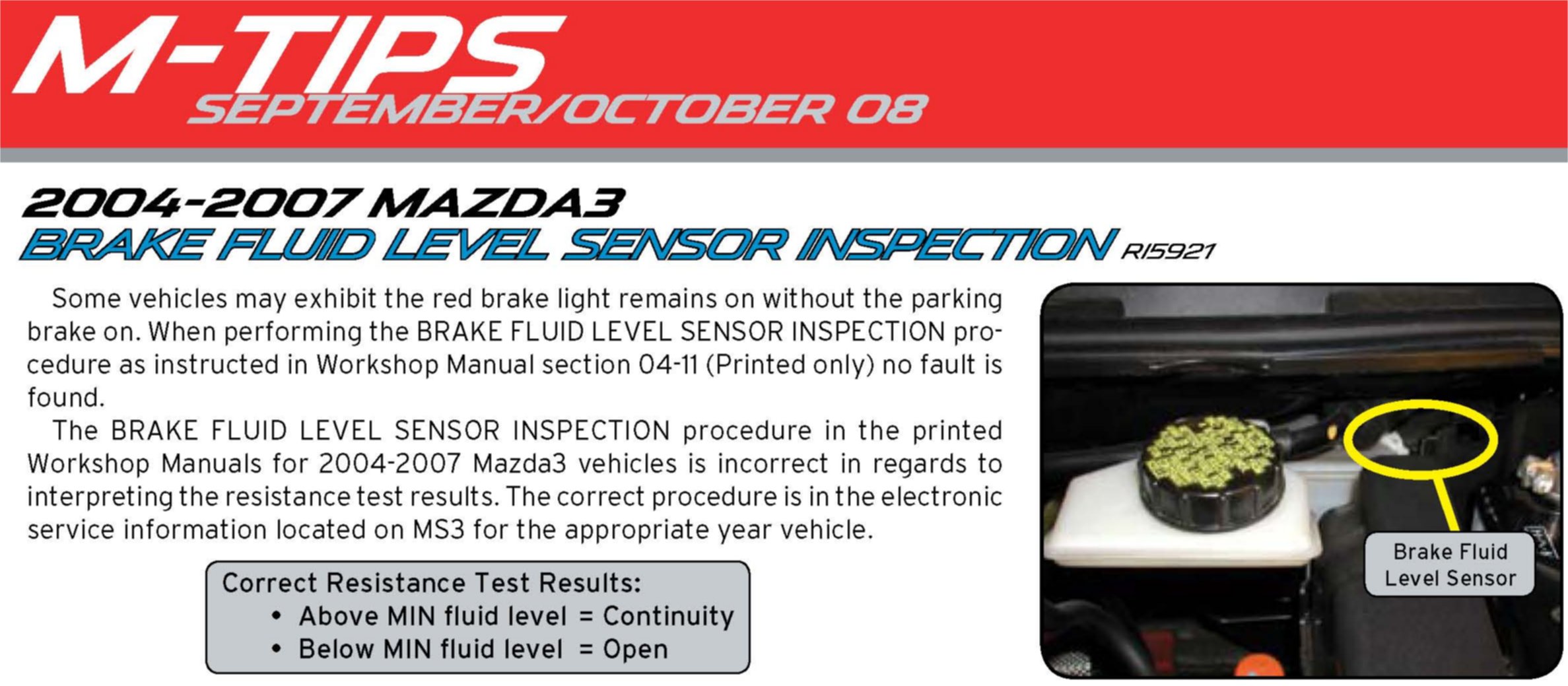 Brakes - Brake Fluid Level Sensor Inspection