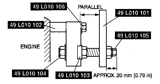 3. Adjust the SSTs (bolts) so that less than 20 mm {0.79 inch} of thread is exposed.