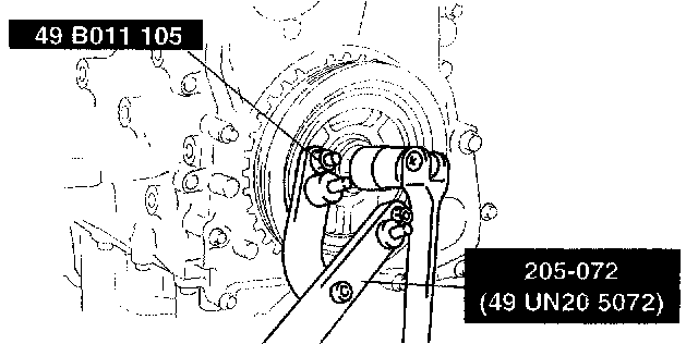 3. Turn the crankshaft clockwise the crankshaft is in the No. 1 cylinder TDC position (until the balance weight is attached to the SST).