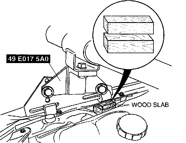 1. Install the suitable wood slabs between the front fender panel and apron reinforcement upper.