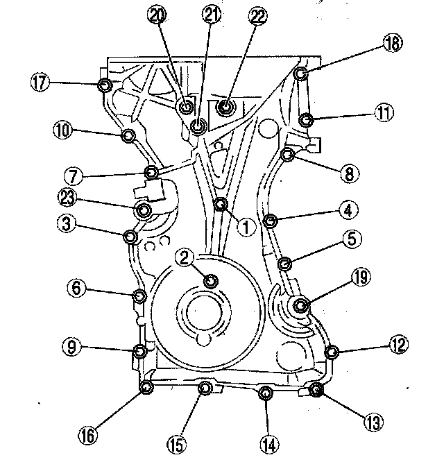 - Install the engine front cover within 10 min of applying the silicone sealant.